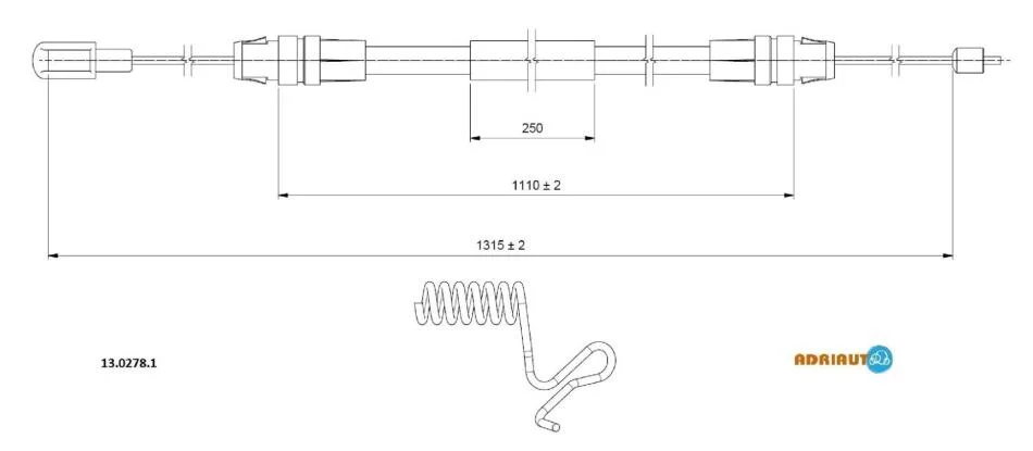 A_Трос гальмівний Ford TRANSIT CAB (all) RWD single wheels exc. 2.3 (1315/1110) "R RH"06-14 ADRIAUTO 1302781