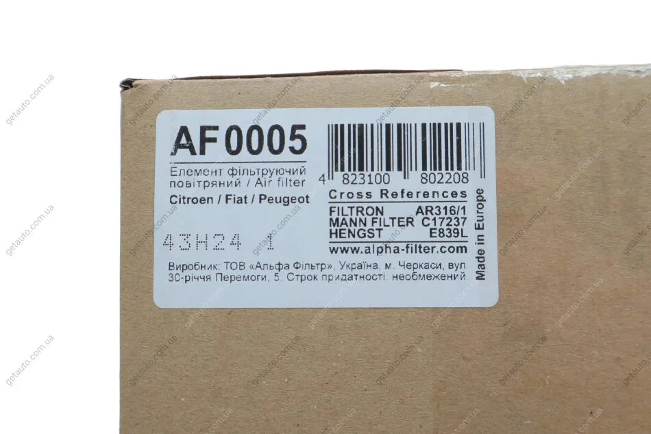 Аналоги "AF0005 ALPHA FILTER":
