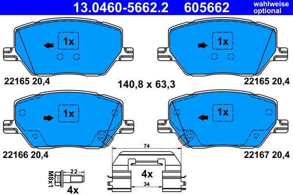 Комплект гальмівних колодок ATE 13.0460-5662.2