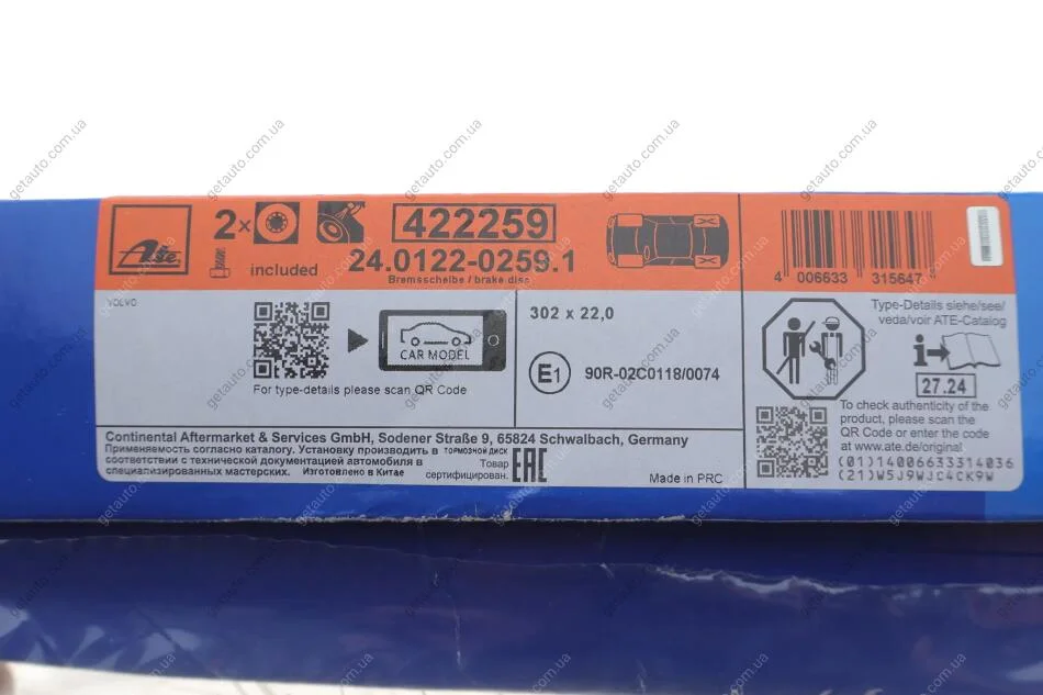 - ATE 24.0122-0259.1 підходить до марок/моделей авто: