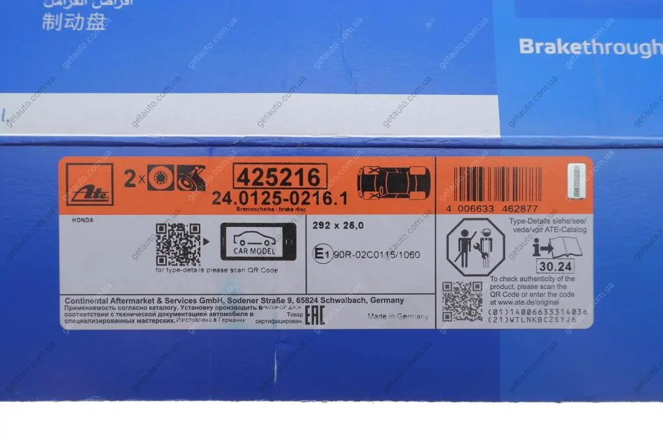 - ATE 24.0125-0216.1 підходить до марок/моделей авто: