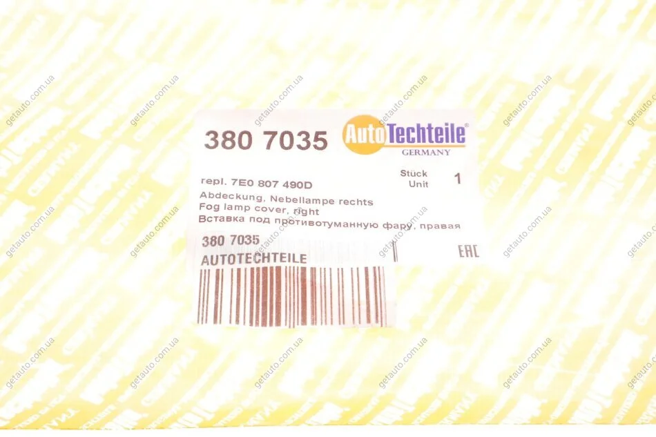 Вставка бампера під противотуманну фару, матеріал пластик AUTOTECHTEILE 380 7035