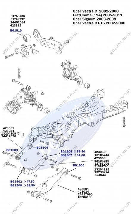 Сторона встановлення: задній міст нижній, з обох сторін