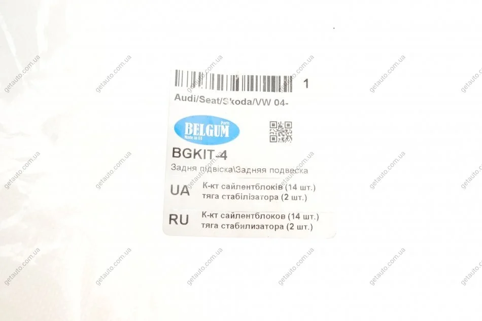 Комплект сайлентблоків (14 шт.), тяга стабілізатора (2 шт.) задньої підвіски Audi A3/Skoda Octavia A5/VW Golf 5 04- BELGUM PARTS BGKIT-4