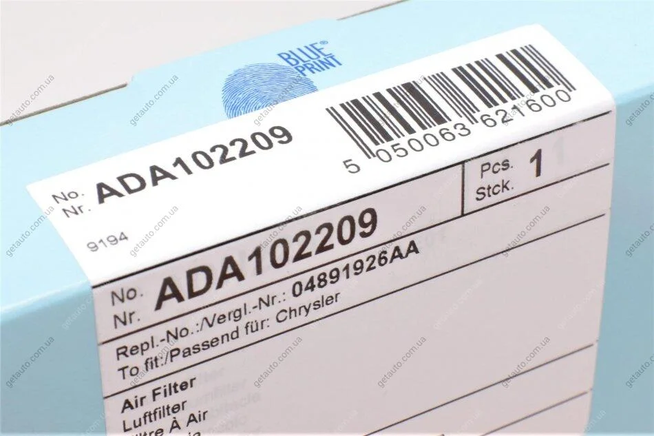 Фільтр повітряний Chrysler, Dodge, FIAT BLUE PRINT ADA102209