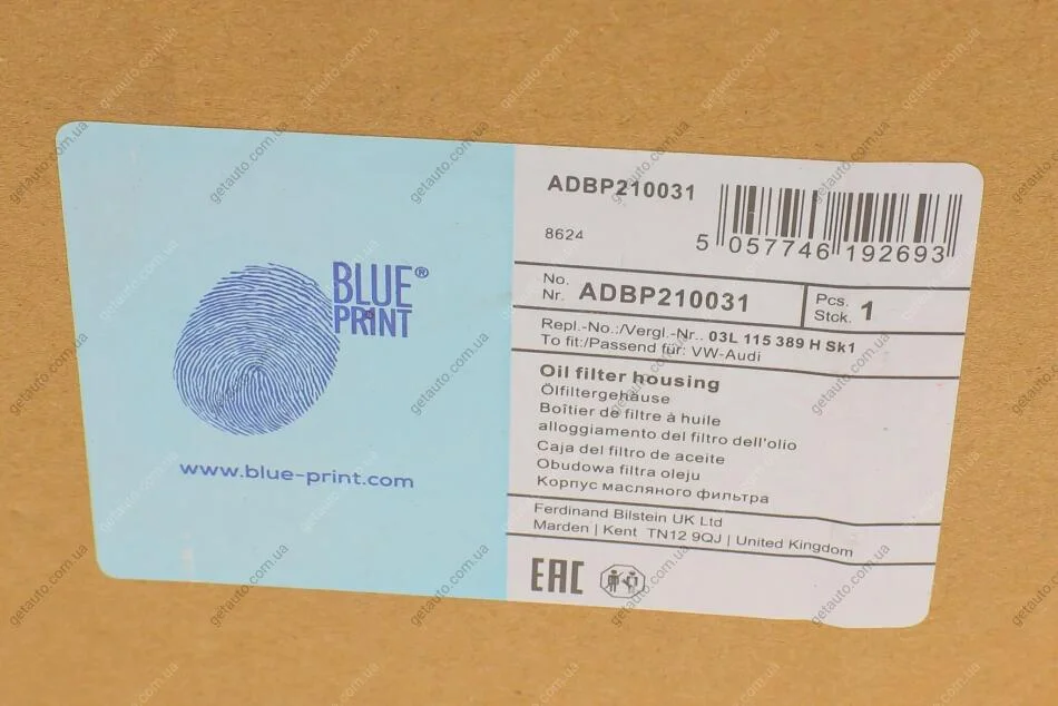 Корпус масляного фільтра з фільтром BLUE PRINT ADBP210031