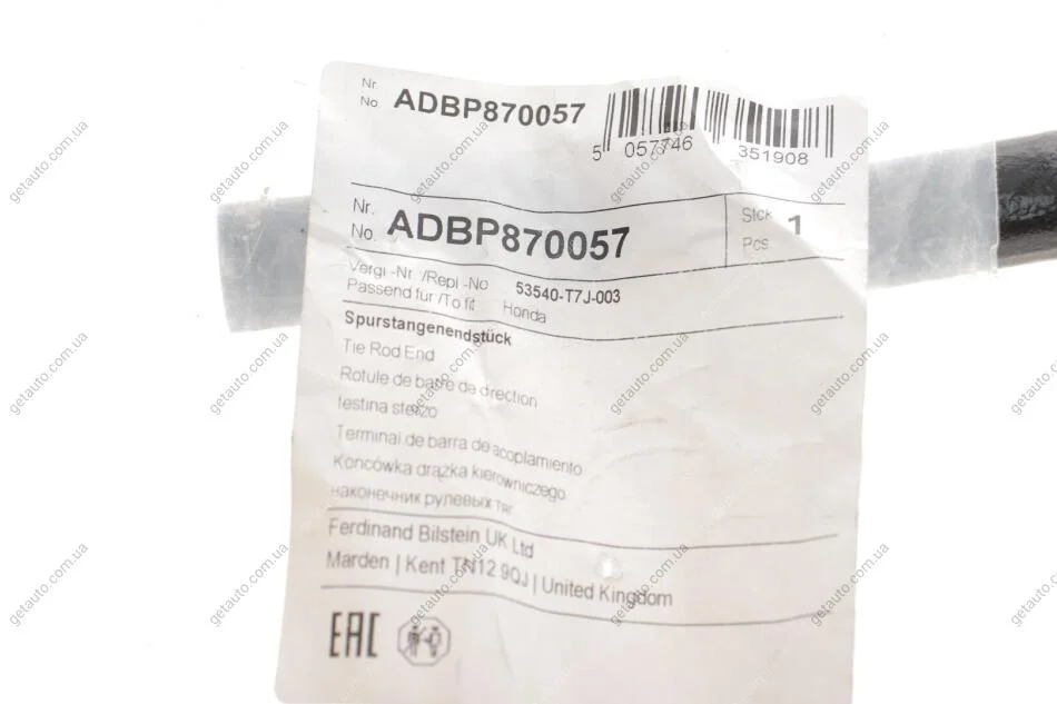 Наконечник рульової тяги з стопорною гайкою і шплінтом BLUE PRINT ADBP870057