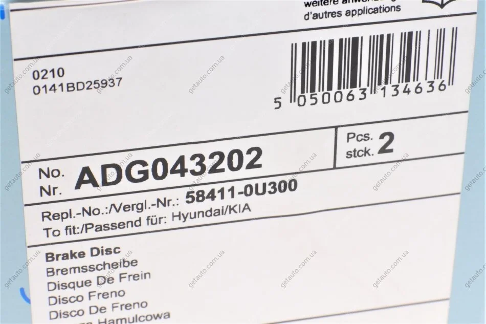 Диск гальмівний(к-т) BLUE PRINT ADG043202
