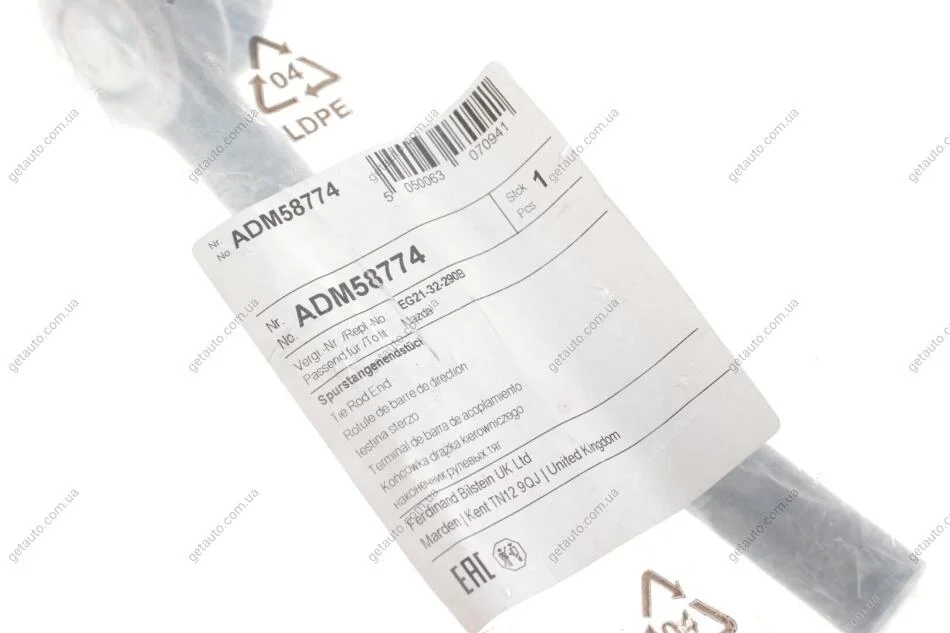 Наконечник рульової тяги з стопорною гайкою і шплінтом BLUE PRINT ADM58774