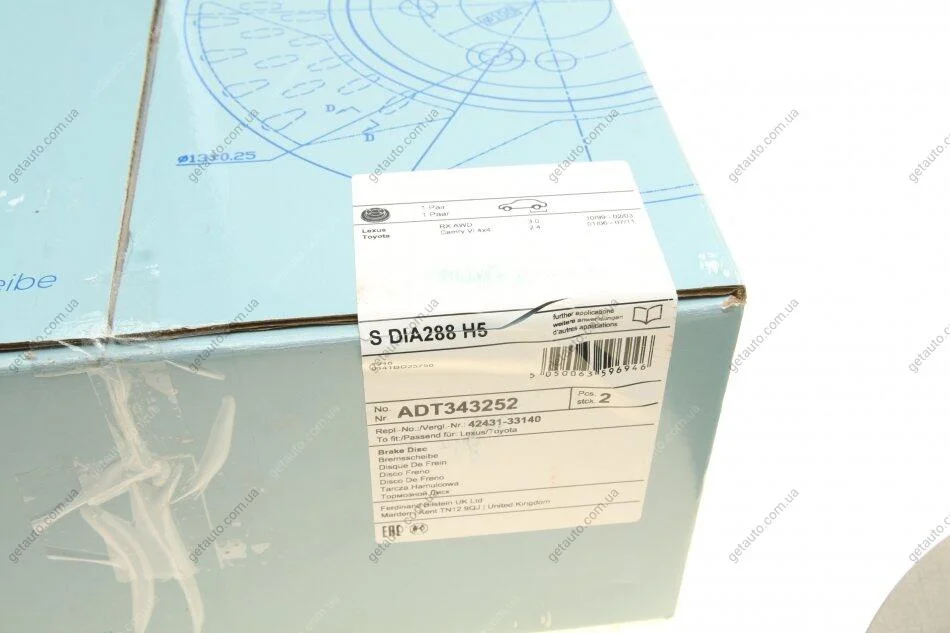 Диск гальмівний задній Lexus, Toyota BLUE PRINT ADT343252