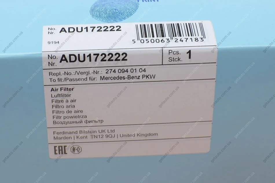 Фільтр повітряний BLUE PRINT ADU172222