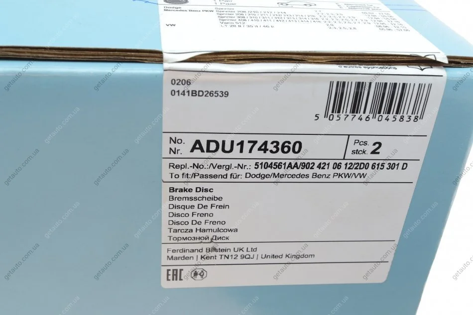 Диск гальмівний(к-т) BLUE PRINT ADU174360