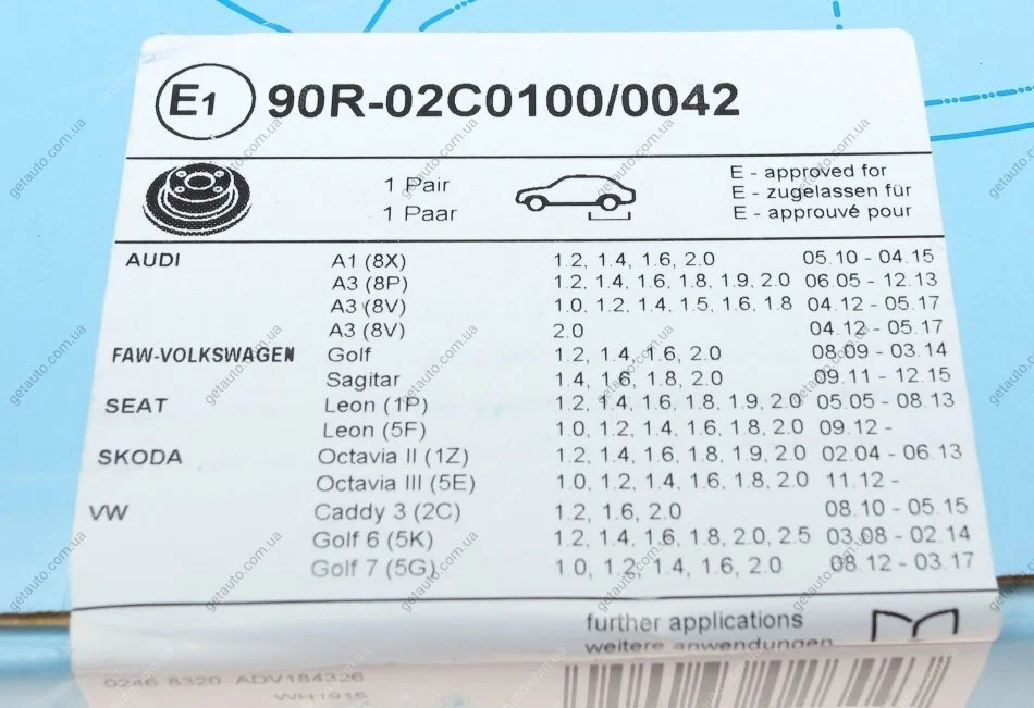 Перевірочне значення: E1 90R 02 C0190/0016