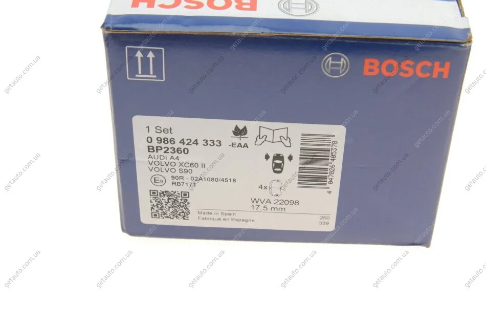 ДИСКОВІ КОЛОДКИ ПЕРЕДНІ BOSCH 0 986 424 333