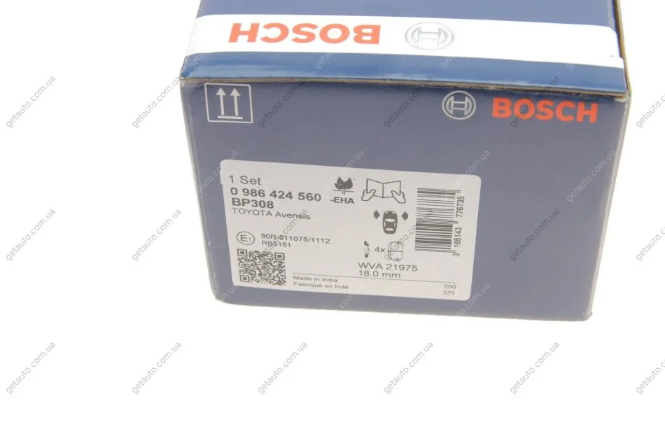 Колодка гальм. диск. TOYOTA Avensis передн. BOSCH 0 986 424 560