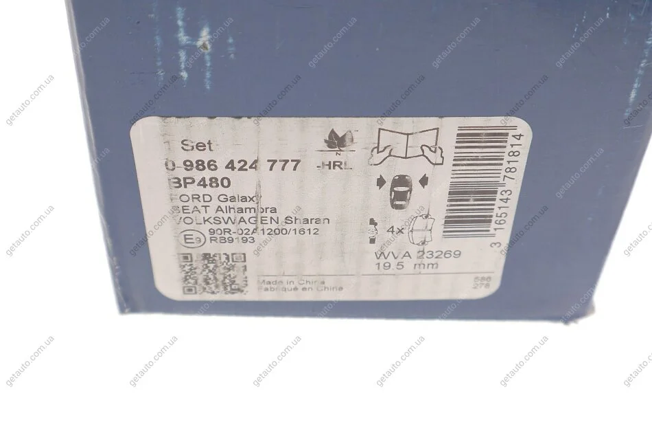 ГАЛЬМІВНІ КОЛОДКИ, ДИСКОВІ BOSCH 0 986 424 777