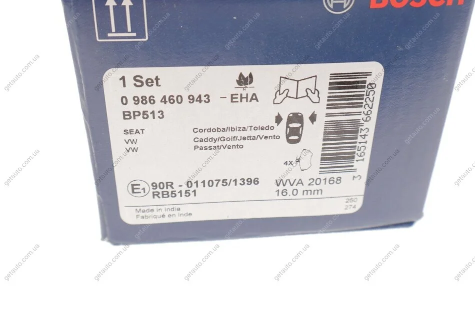 ГАЛЬМІВНІ КОЛОДКИ, ДИСКОВІ BOSCH 0 986 460 943
