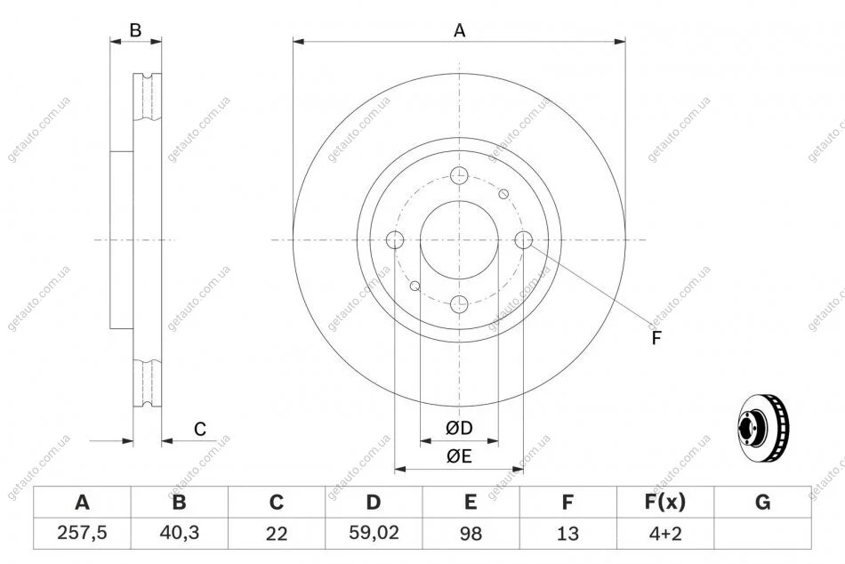 Зовнішній діаметр [мм]: 257.5