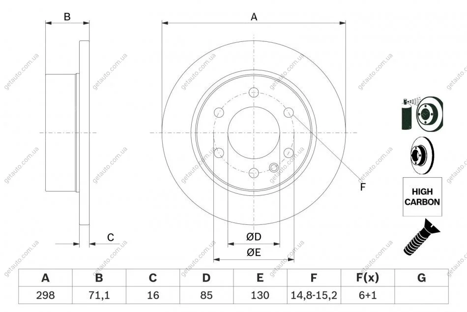 Товщина гальмівного диску (мм): 16