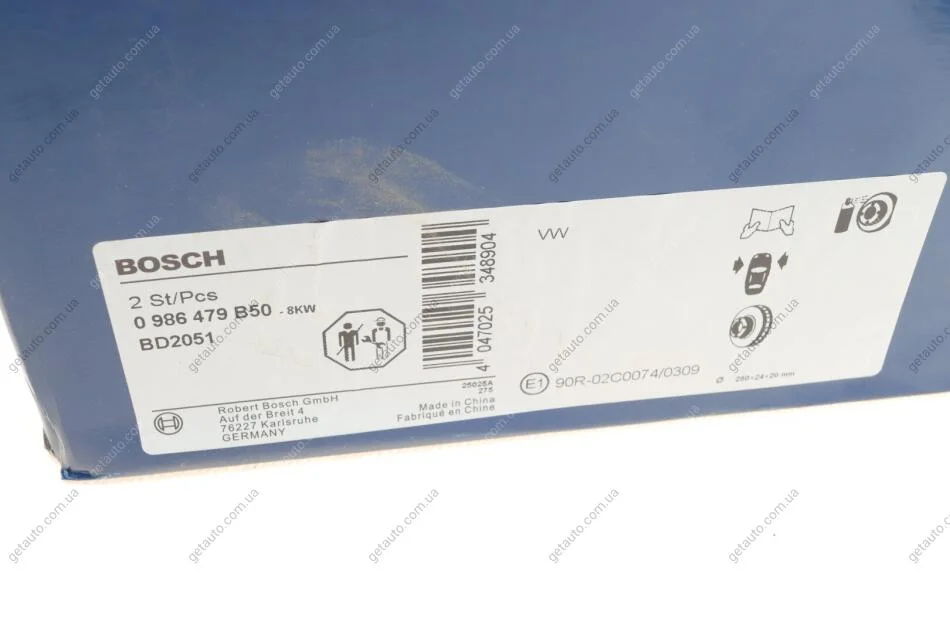 ДИСК ГАЛЬМIВНИЙ ПЕРЕДНIЙ COATED BOSCH 0 986 479 B50