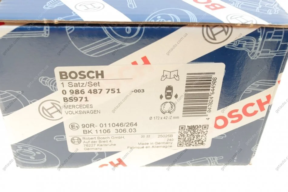 Гальмівні колодки барабанні BOSCH 0 986 487 751