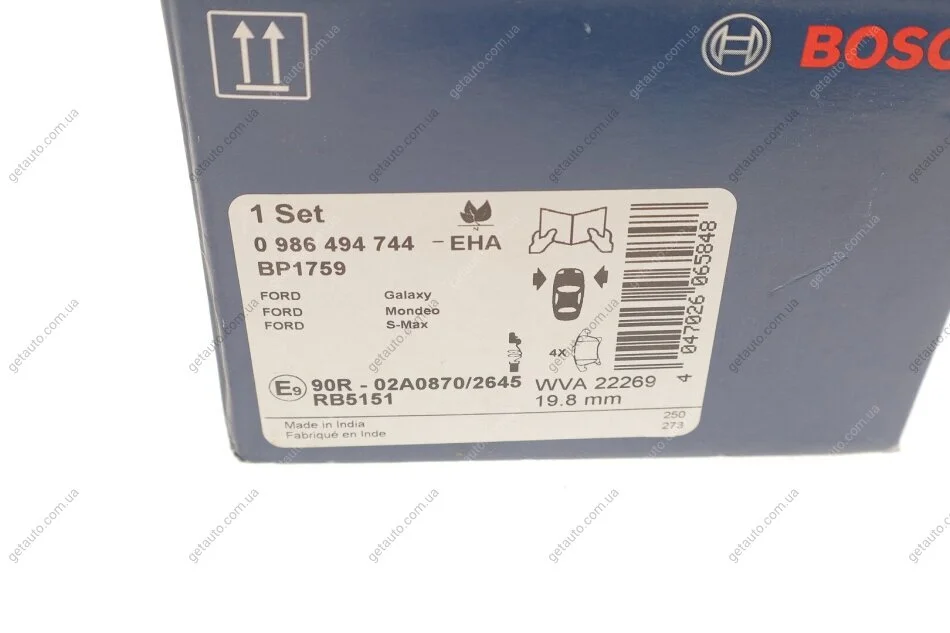 ДИСКОВI КОЛОДКИ ПЕРЕДНI BOSCH 0 986 494 744