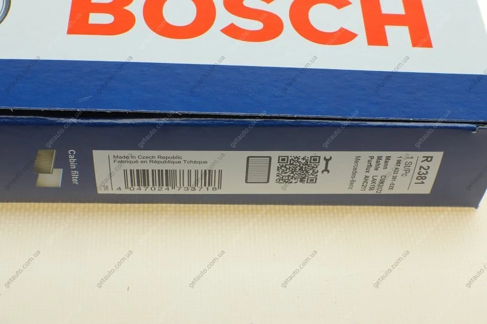 ФІЛЬТР САЛОНУ З АКТИВОВАНИМ ВУГІЛЛЯМ BOSCH 1 987 432 381