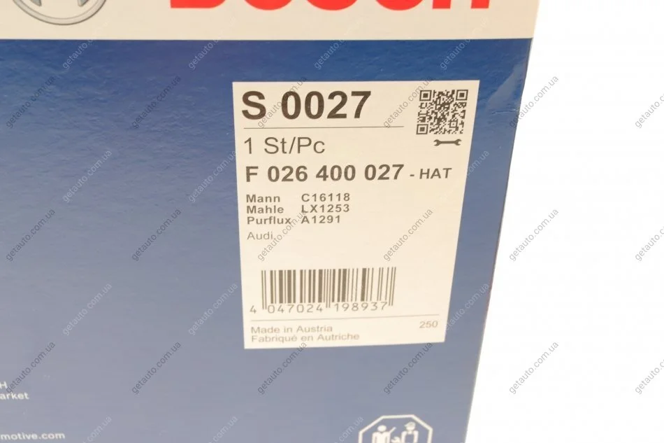 Аналоги "F 026 400 027 BOSCH":