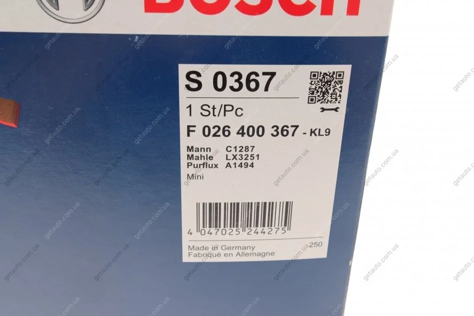 Аналоги "F 026 400 367 BOSCH":