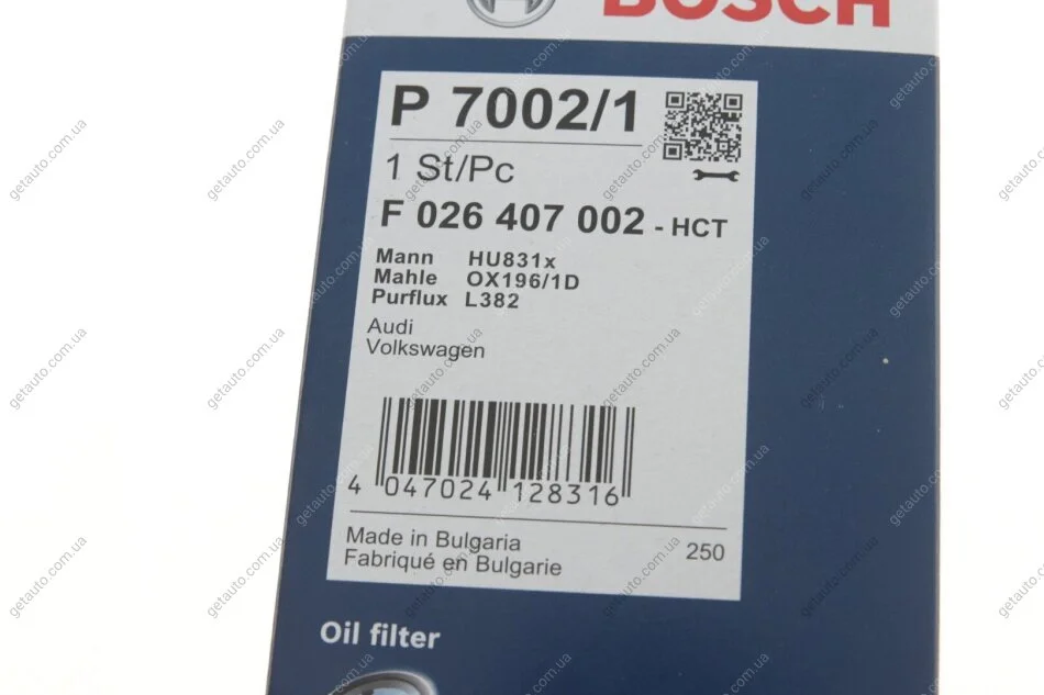 МАСТИЛЬНИЙ ФІЛЬТР BOSCH F 026 407 002