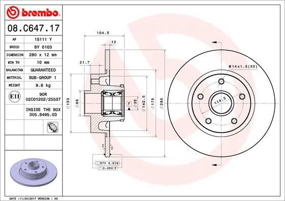 Гальмівний диск BREMBO 08.C647.17