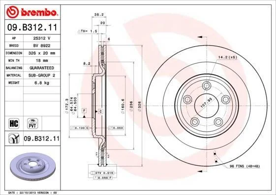 - BREMBO 09.B312.11 підходить до марок/моделей авто: