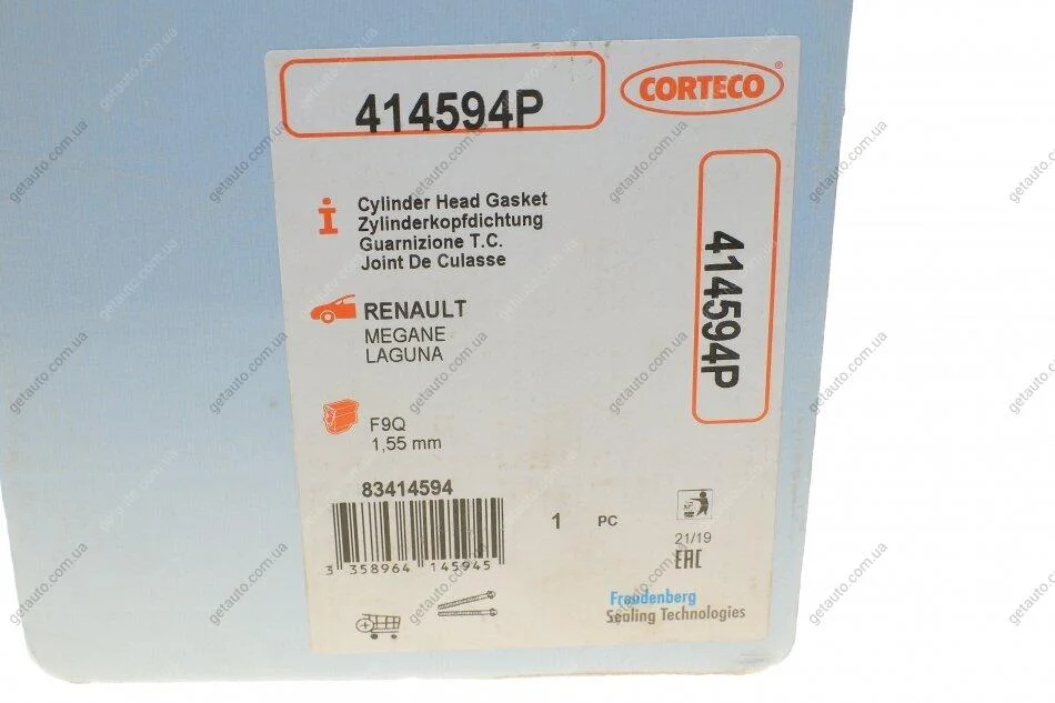 Прокладка головки блоку циліндрів RENAULT F9Q 3! 1.55MM -05.2000 CORTECO 414594P
