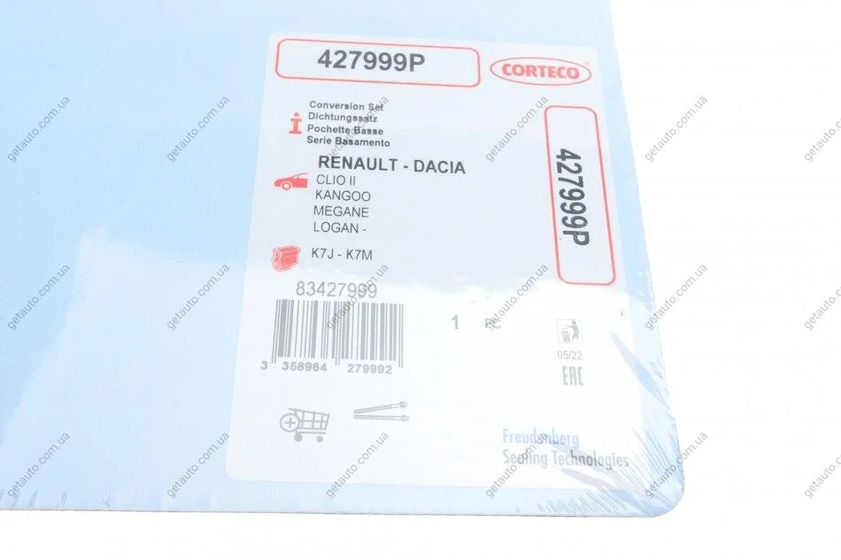 Комплект прокладок, блок-картер двигуна RENAULT 1,4/1,6 K7J/K7M CORTECO 427999P