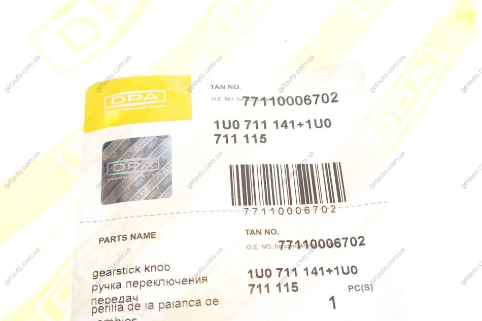 Ручка КПП із пильником чорний 5 ступ Skoda Octavia (97-00/01-11) DPA 77110006702