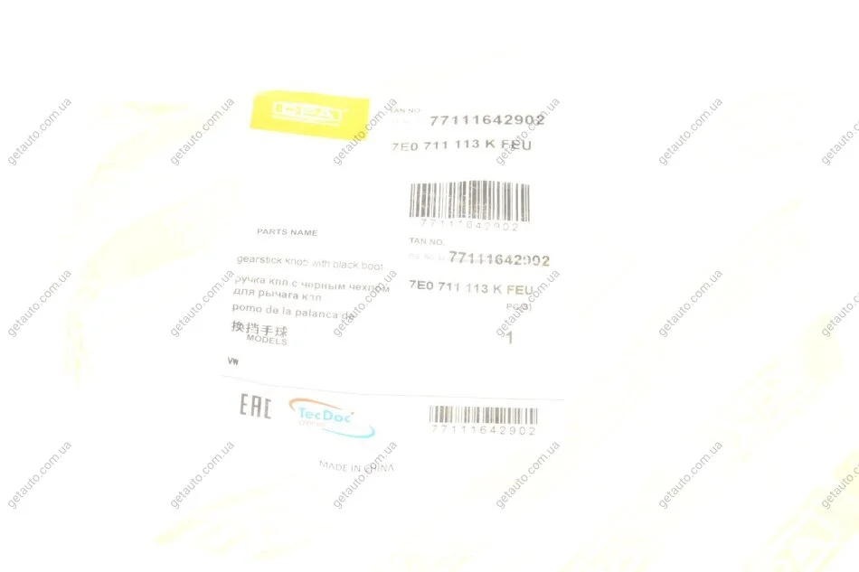 Рукоятка чорна з пильником штока вибору передач 6 ступів VW T6 (15-) DPA 77111642902