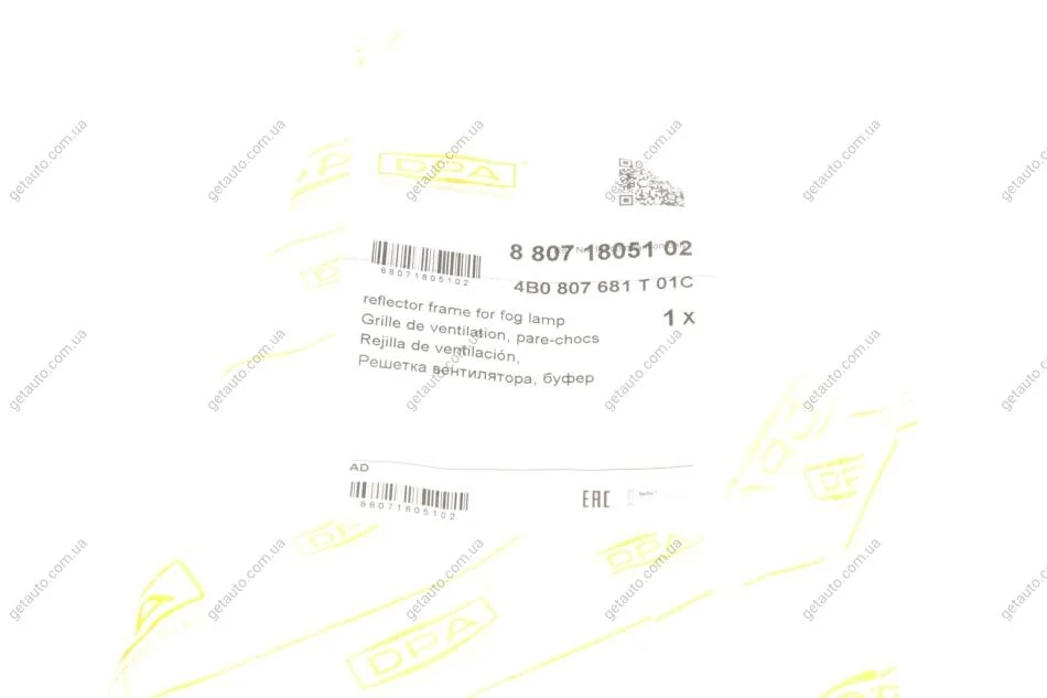 Решітка протитуманної фари лівої Audi A6 (02-05) DPA 88071805102