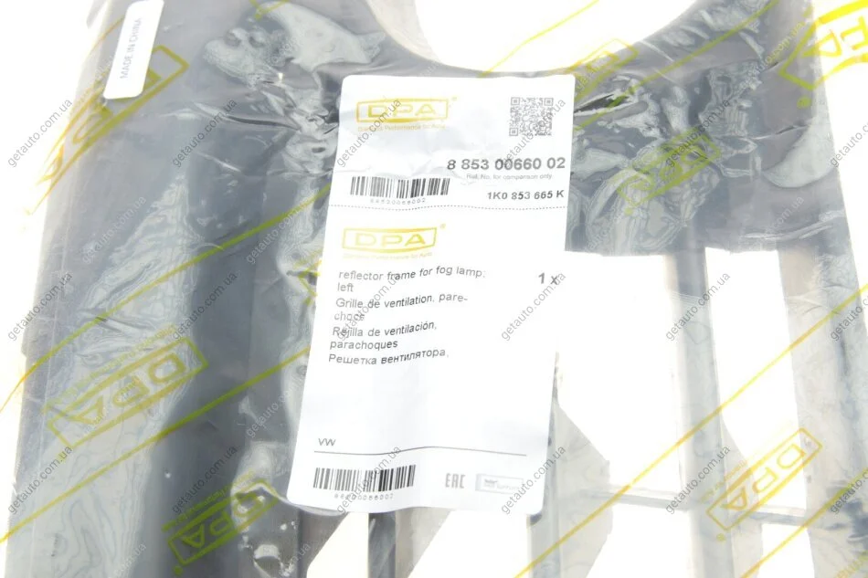 Решітка протитуманної фари з отвором і з сірою смугою права VW Jetta III (1K2) (05-10), Golf V Variant (1K5) (07-09) DPA 88530066002