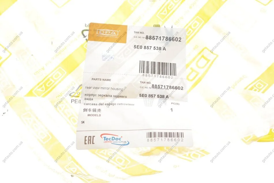 - DPA 88571786602 підходить до марок/моделей авто: