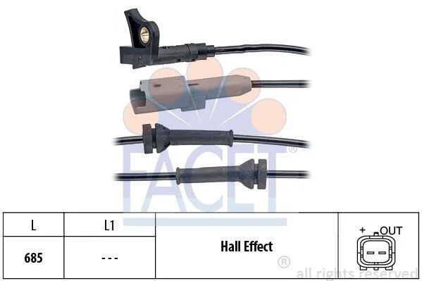 Датчик ABS Peugeot 307, 00- перед Л/Пр (21.0035) FACET 210035