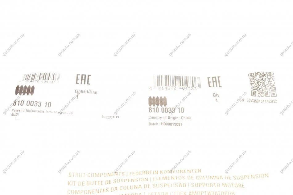 - FAG 810 0033 10 підходить до марок/моделей авто: