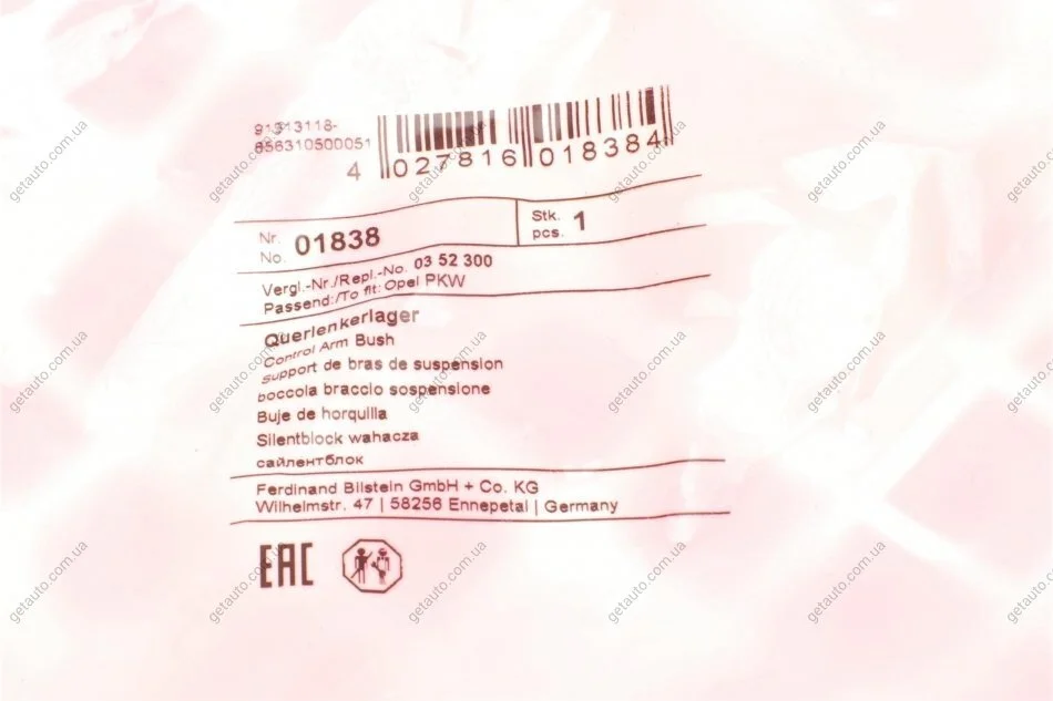- FEBI BILSTEIN 01838 підходить до марок/моделей авто: