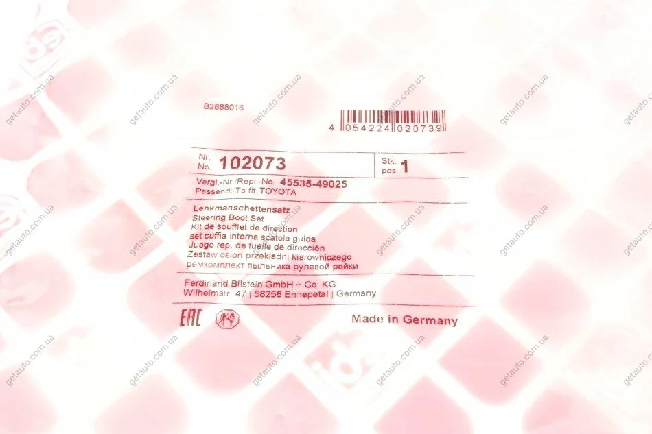 - FEBI BILSTEIN 102073 підходить до марок/моделей авто: