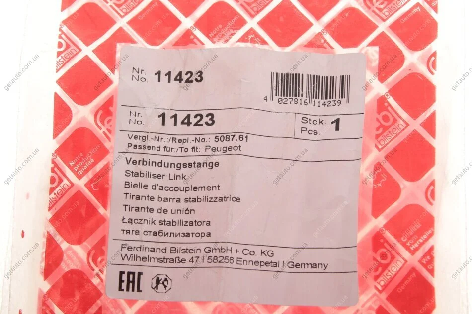 - FEBI BILSTEIN 11423 підходить до марок/моделей авто: