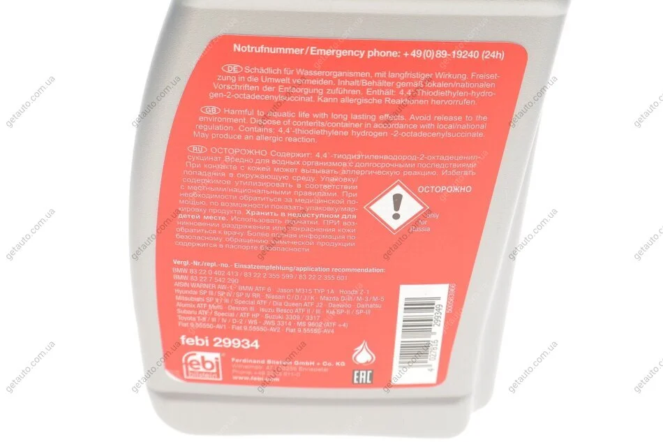 К-т сервісний АКПП(рідина для гідравл. передач 29934 6x1L + фільтр АКПП з прокладкою) FEBI BILSTEIN 176873