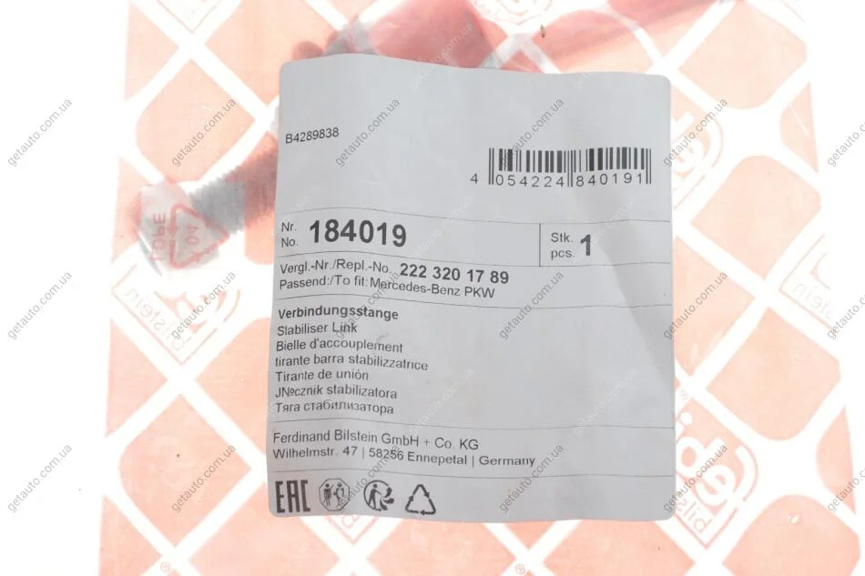 - FEBI BILSTEIN 184019 підходить до марок/моделей авто: