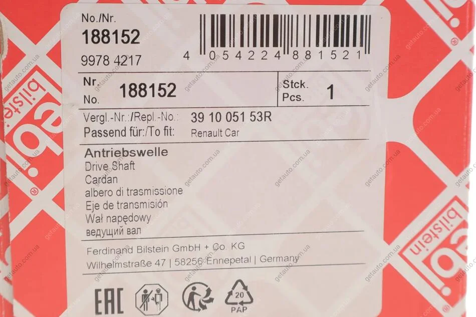 - FEBI BILSTEIN 188152 підходить до марок/моделей авто: