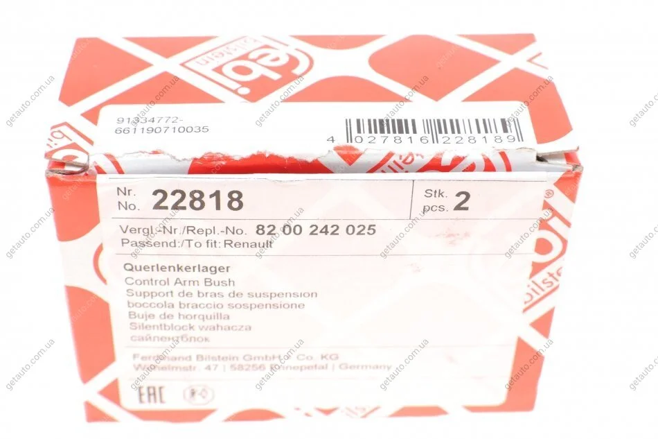 - FEBI BILSTEIN 22818 підходить до марок/моделей авто: