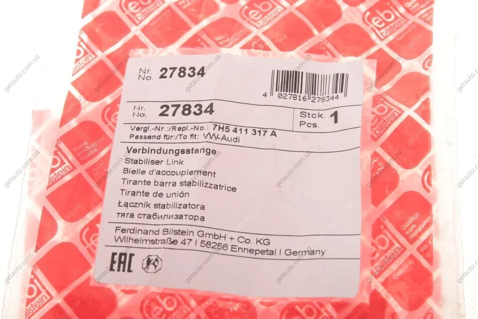 - FEBI BILSTEIN 27834 підходить до марок/моделей авто: