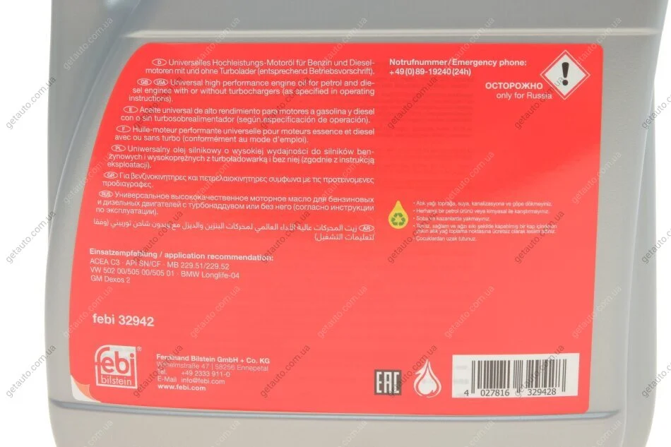 Олива моторна SAE 5W-30 Longlife 4L FEBI BILSTEIN 32942